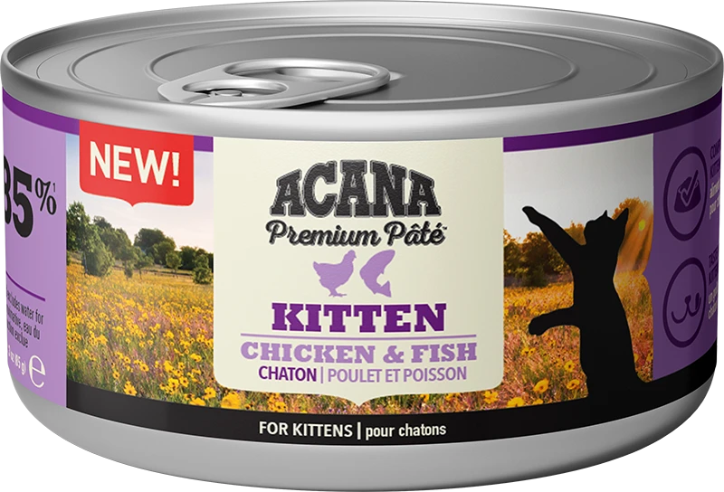 Our Chicken & Fish recipe is an animal protein-rich pâté crafted to completely nurture your growing kitten. Its premium animal ingredients and bone broth provide the quality nutrition your kitten needs to grow up strong.