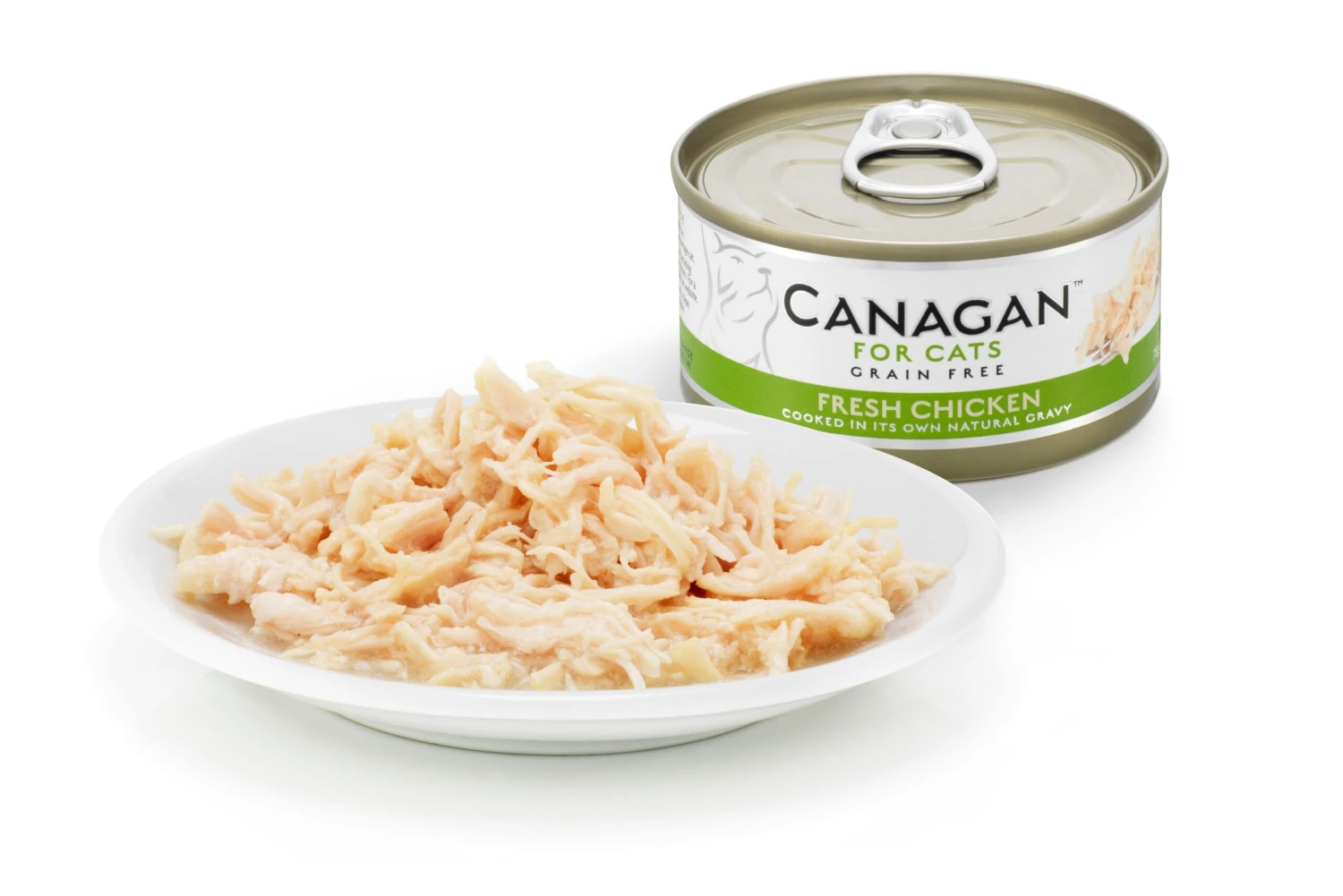 Tender shredded chicken breast meat without the skin cooked in its own gravy. Canagan is a highly nutritious complete food for cats that can also be used to accompany dry food. We use chicken breast meat without the skin for all our wet chicken foods.