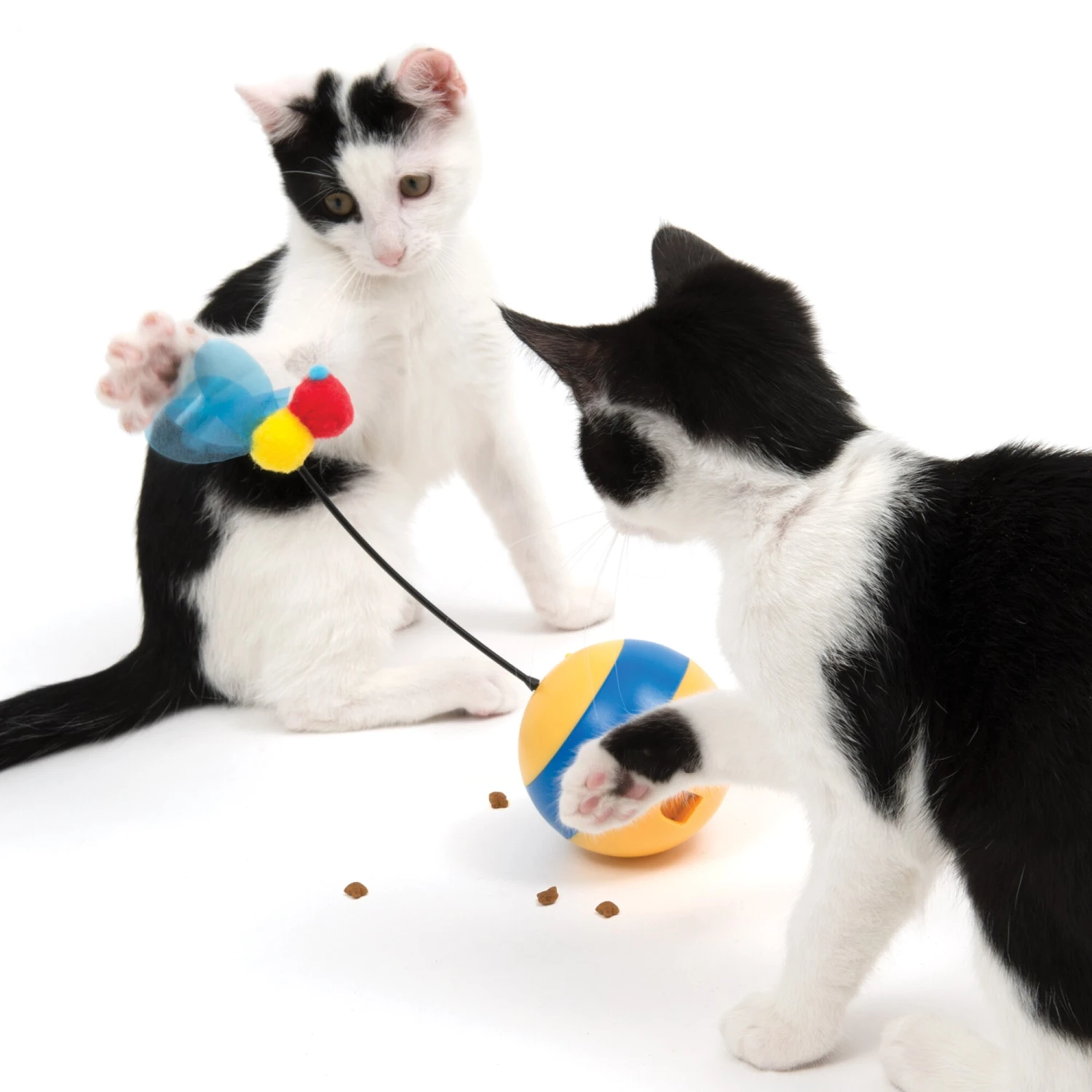 Once you press the button, the cat toy spins crazily and sends out laser beams, encouraging your cat to interactive with it. It also allows you to insert your cats favourite treats and the ball will dispense them during play.