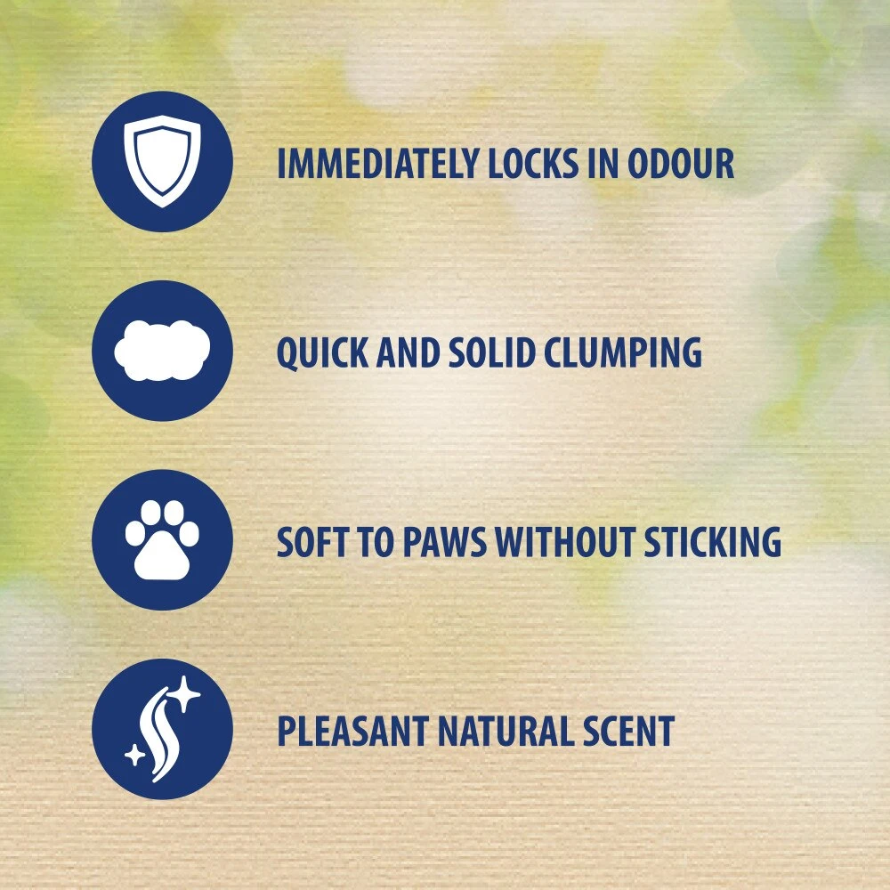 – Soft on the paws and without sticking, Catsan natural clumping litter has a pleasant natural scent for you and your cat