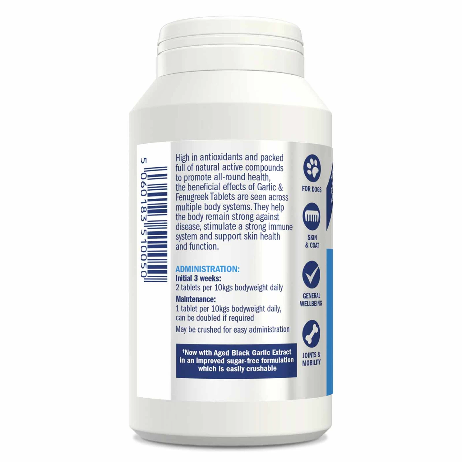 Garlic & Fenugreek Tablets should be given for at least a month and can be used long-term to help maintain a strong immune system – so your dog is ready to fight off whatever life throws at them.