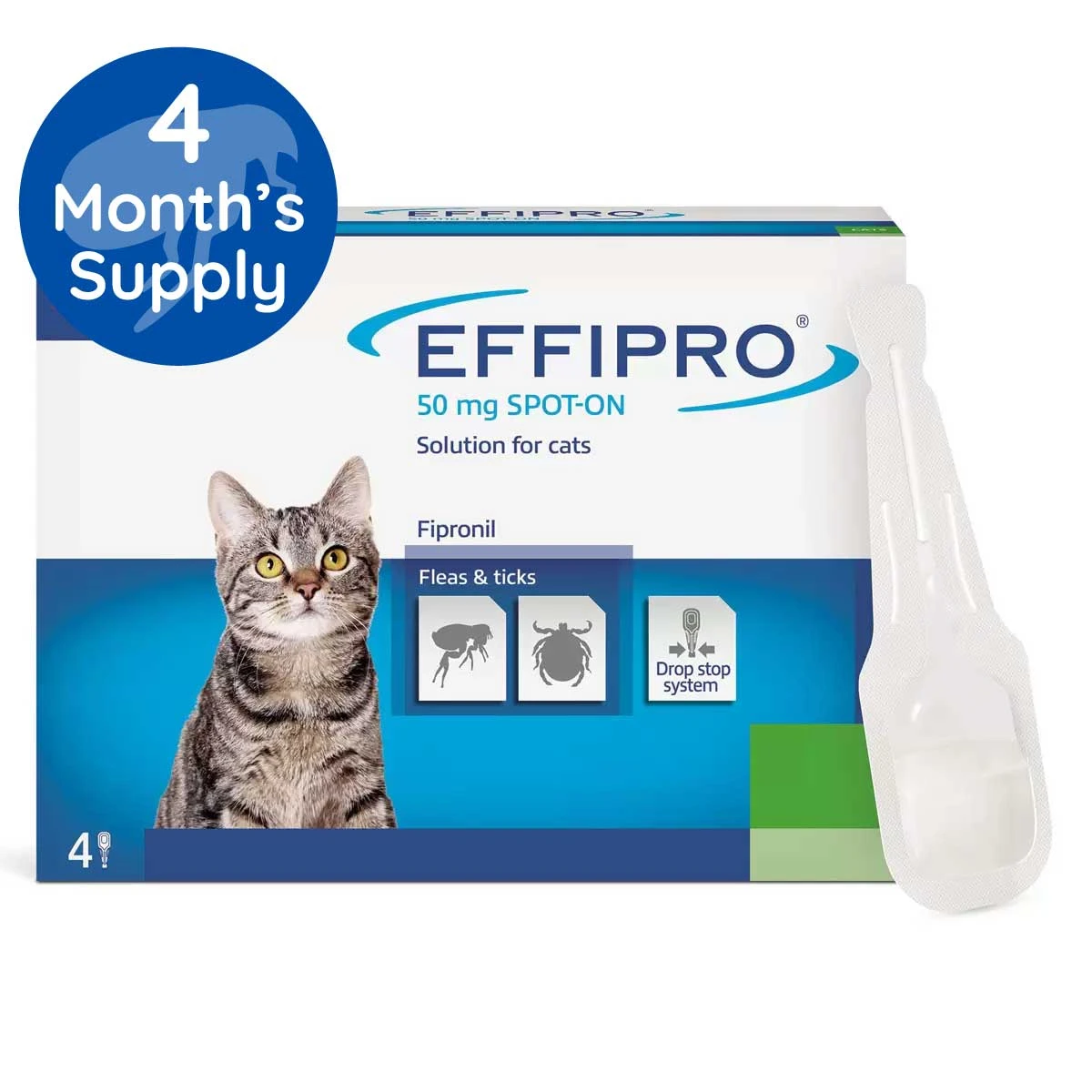 Effipro is an effective treatment and prevention of fleas and ticks on cats. It is based on new a formula containing Fipronil, an insecticide and acaricide belonging to the phenylpyrazole family.