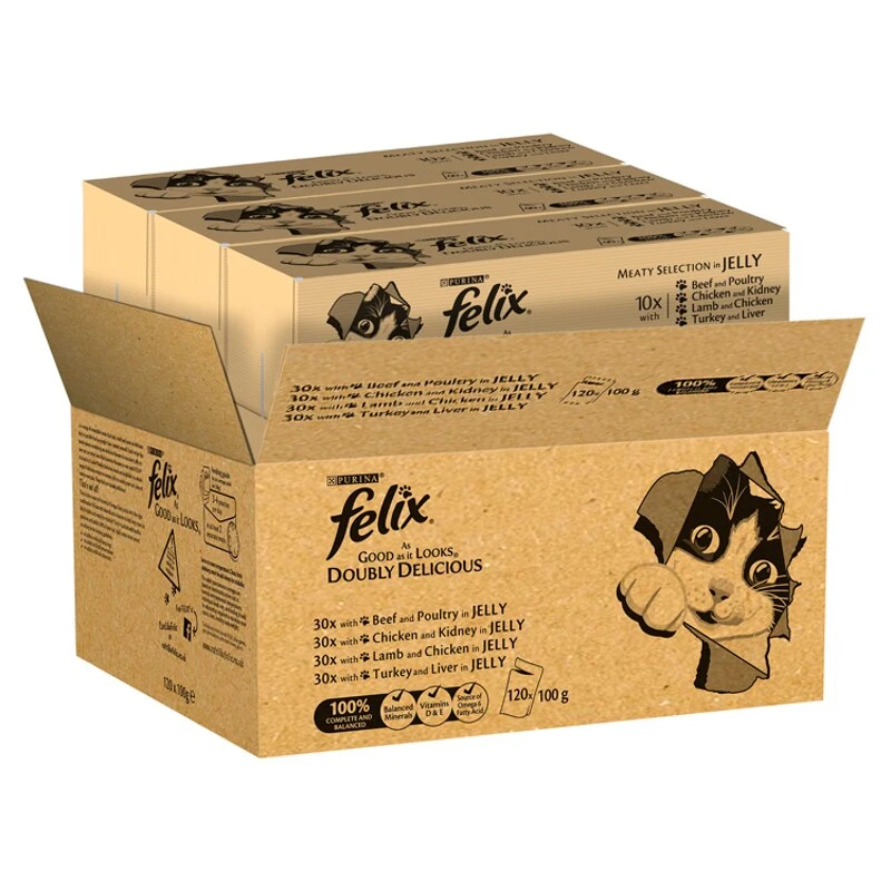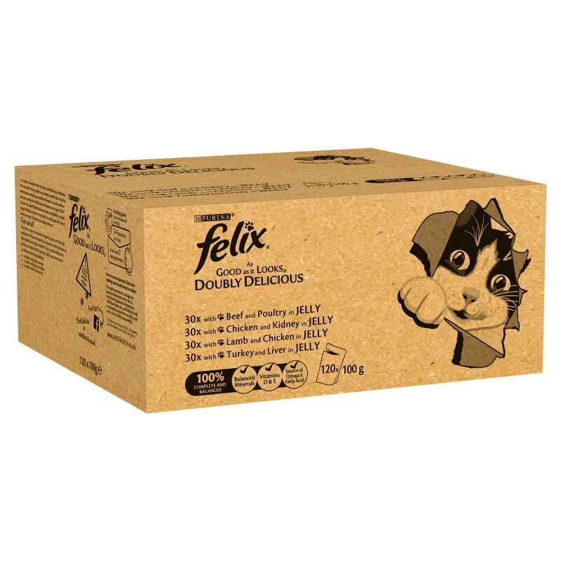is a range of irresistible meals that look, smell and taste so delicious they’re just like food you might have cooked yourself. Each recipe has tender pieces combining two delicious flavours in succulent jelly so your cat can enjoy two of his favourite flavours in one meal! Felix® As Good As It Looks® Doubly Delicious meals are available in a whole range of delicious recipes in savoury jelly to satisfy your cat’s love of variety every day. They really are doubly delicious!