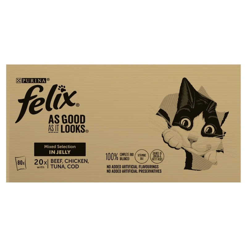 FELIX As Good As It Looks is a range of delicious meals which look and smell so meaty, it looks like food you might have cooked yourself. Specially prepared with tender meaty pieces in a succulent jelly, we are sure your cat will find it irresistible every meal time.