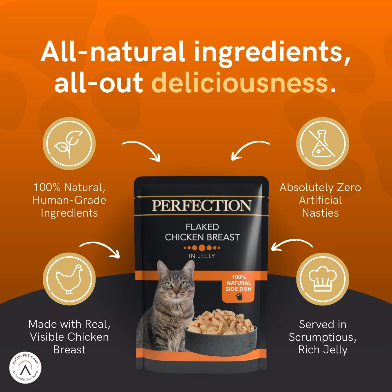 HiLife PERFECTION has been created using only human-grade ingredients and absolutely no artificial additives. The result is delicious, all-natural recipes that your cat is sure to love.