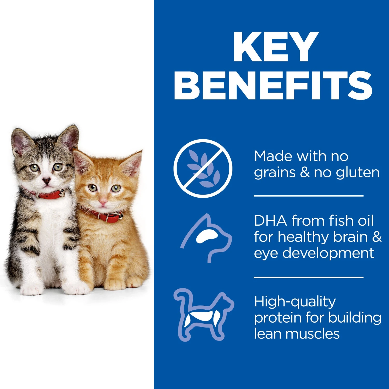 Hill’s SCIENCE PLAN NO GRAIN Kitten food with Chicken contains DHA from fish oil for healthy eye & brain development and high-quality protein to support muscle growth. With balanced minerals to promote strong bones & teeth.