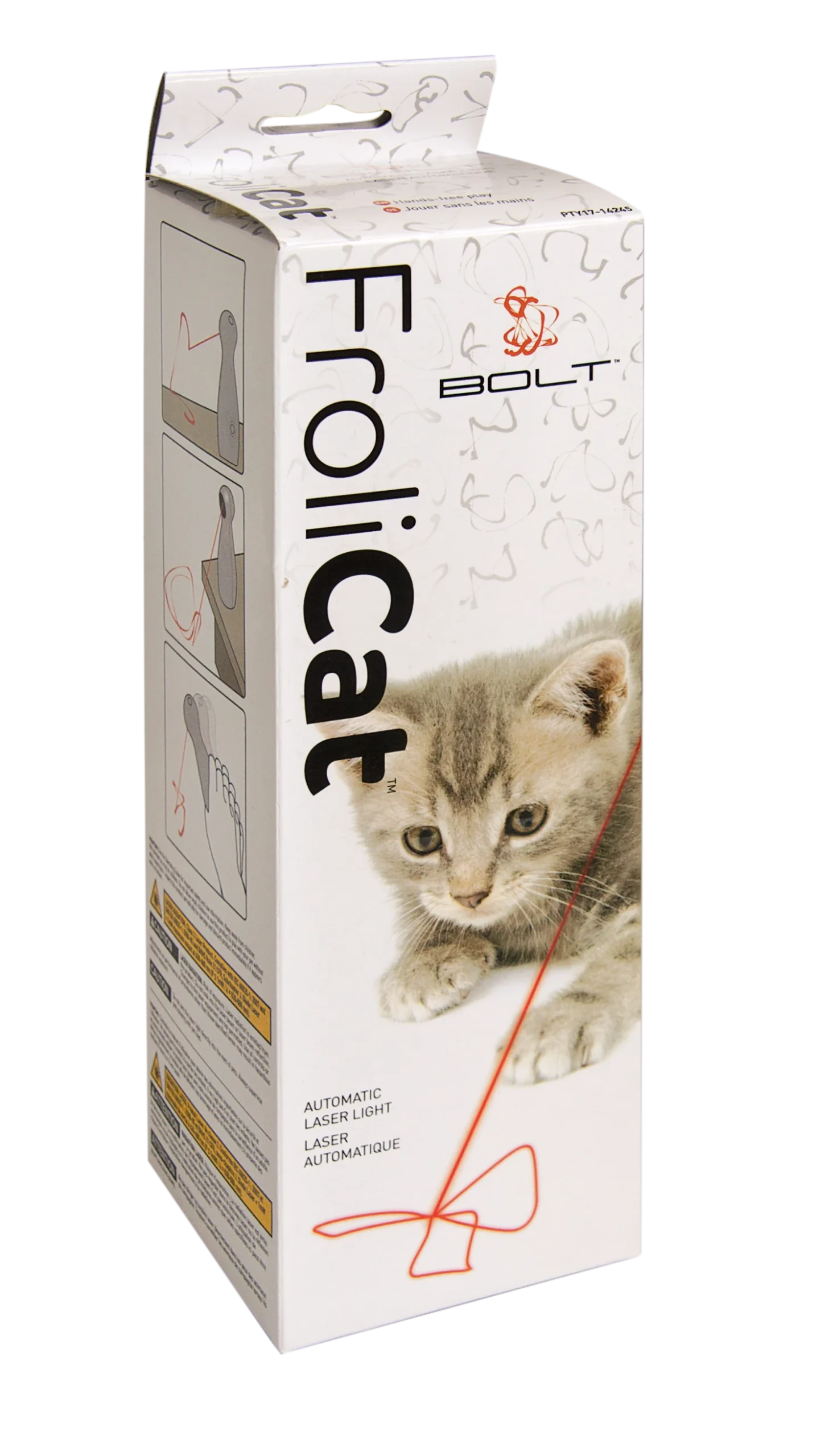 Give your cat laser focus with the PetSafeĀ® Bolt Laser Light Cat Toy. Set to automatic mode for hands-free play or set to manual mode to play one on one with your cat! Cats of all breeds and ages will love chasing this random laser game designed to keep them active. This product uses safety tested lasers that are safe for your cat and home. The timer automatically turns off after 15 minutes to give your kitten a break and to prolong electronic battery life. Requires 4 AA batteries (not included). Your pet deserves the best. Trust PetSafeĀ® to help keep your pet healthy, safe and happy.