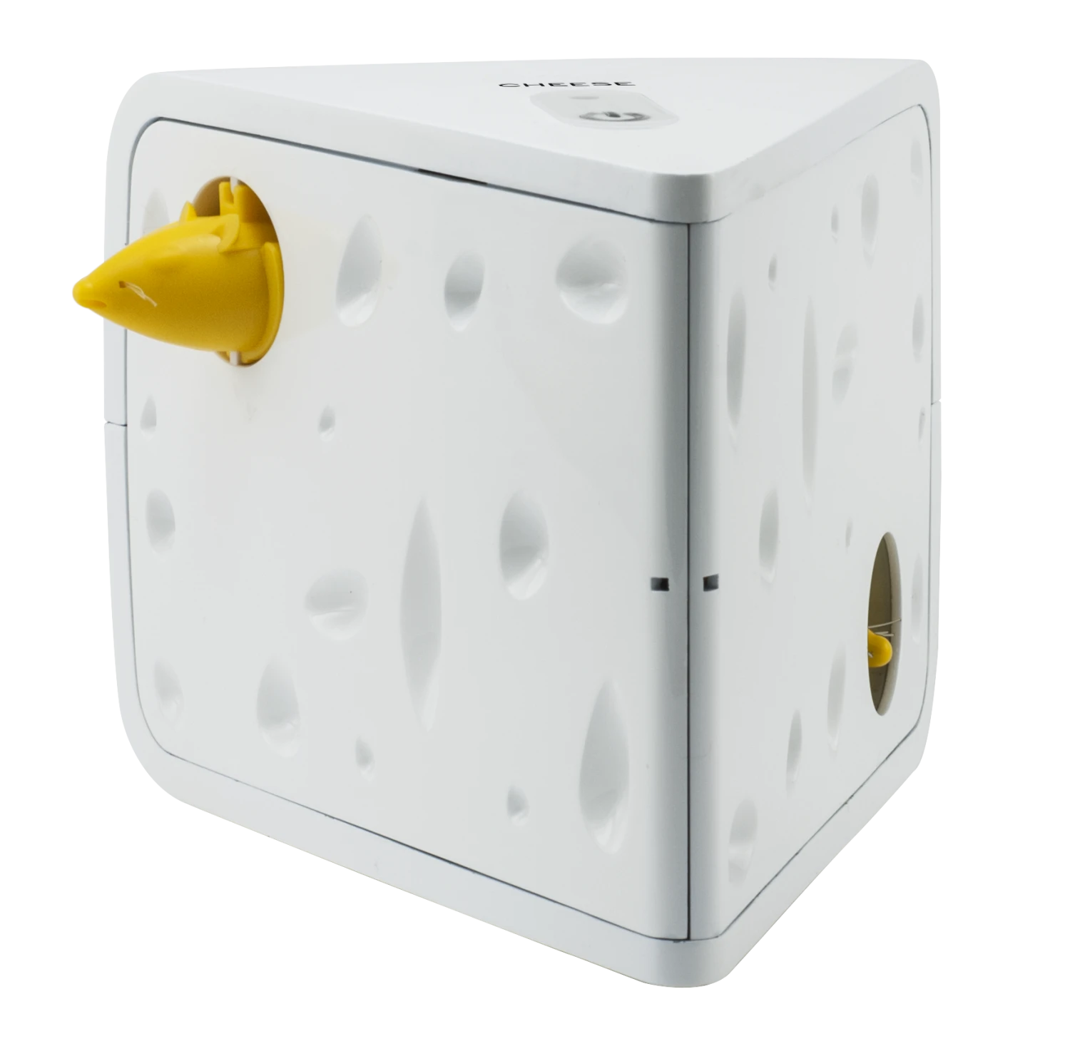 The PetSafe® Cheese Automatic Cat Toy is a fresh take on the classic cat and mouse pursuit. This interactive game of peek-a-boo includes two mice that pop out of a Swiss cheese block, keeping your cat busy on the hunt throughout the day. Give your cats spontaneous exercise by setting three separate automatic play sessions at random times throughout the day. During single play sessions, the timer automatically turns toy off after 10–15 minutes to conserve battery life. Requires three AA batteries (not included). Trust PetSafe® to help keep your pet healthy, safe and happy.