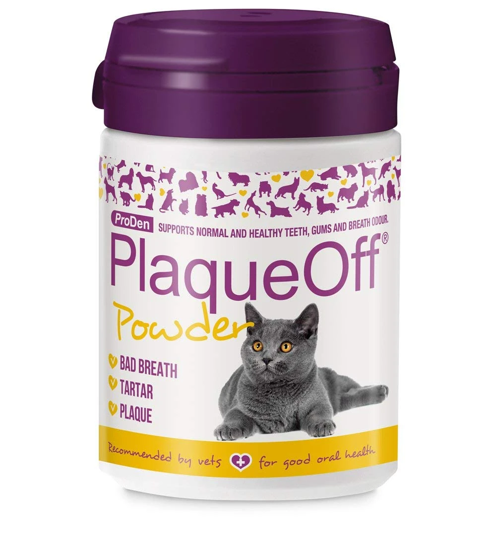 ProDen PlaqueOff® Powder Cat is a patented natural feed supplement which is clinically proven to significantly reduce bad breath, plaque and tartar in cats. Like all ProDen PlaqueOff® products, ProDen PlaqueOff® Powder Cat is made from Ascophyllum nodosum. Since cats are known for having a more discerning palate, we have added brewer’s yeast to this product – an ingredient which most cats love. ProDen PlaqueOff® Powder Cat has proven to be irresistible to a panel of cat critics.