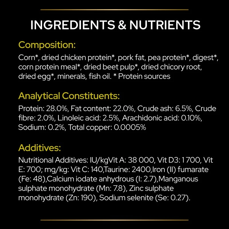 Keep pet food in a cool and dry place. Best before date, registration and batch numbers: see coding on back of pack.